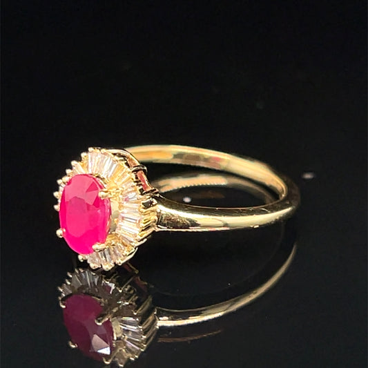 Estate 14K Yellow Gold Natural Ruby and Diamond Halo Ring Size 7