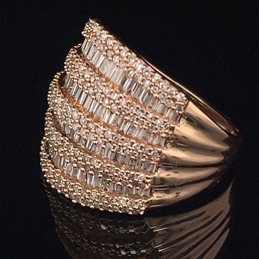 Estate 14K Rose Gold Natural Diamond Thick Row Cluster Ring Size 7