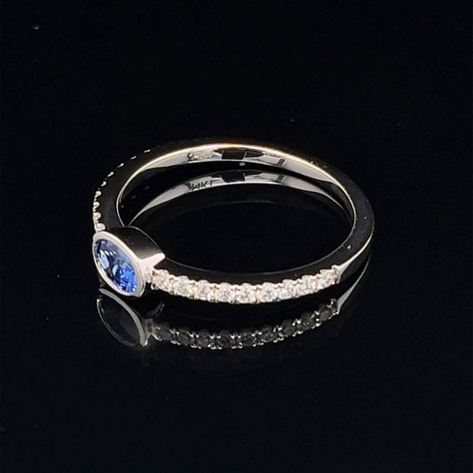 14K White Gold Oval Blue Sapphire and Natural Diamond Ring Size 7