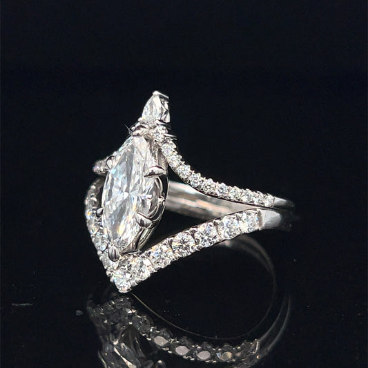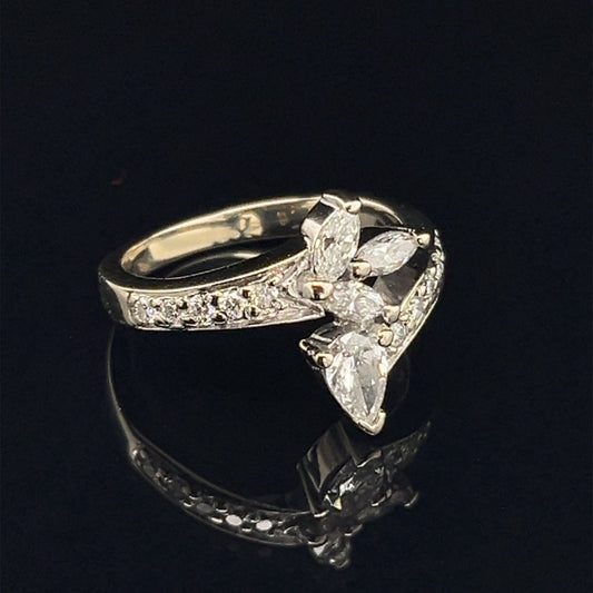 Estate 14K White Gold Marquise and Pear Cut Natural Diamond Ring Bypass Style Size 6