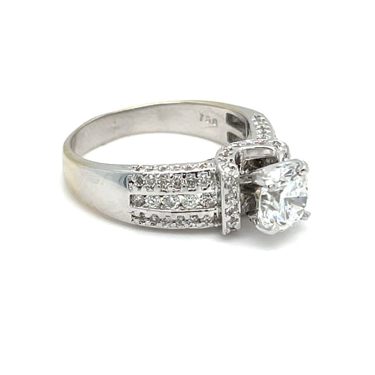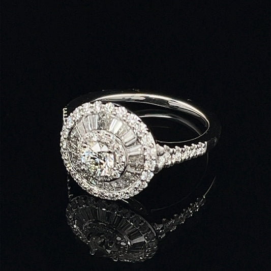 18K White Gold Natural Diamond Round Cluster Cocktail Ring Size 6.75