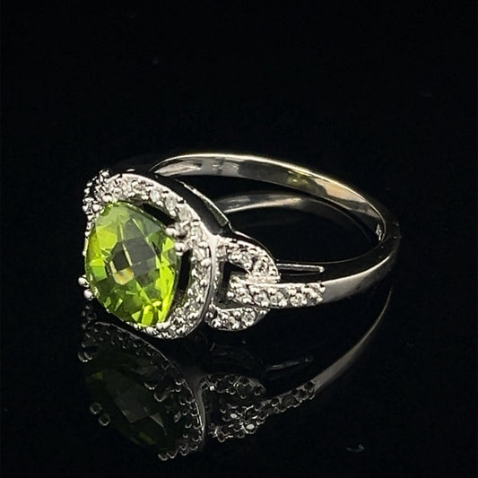 10K White Gold Natural Peridot and Diamond Halo Style Cocktail Ring Size 7.5