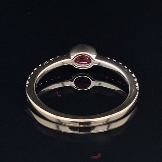 14K White Gold Natural Oval Ruby Ring with Natural Diamond Accents Size 7