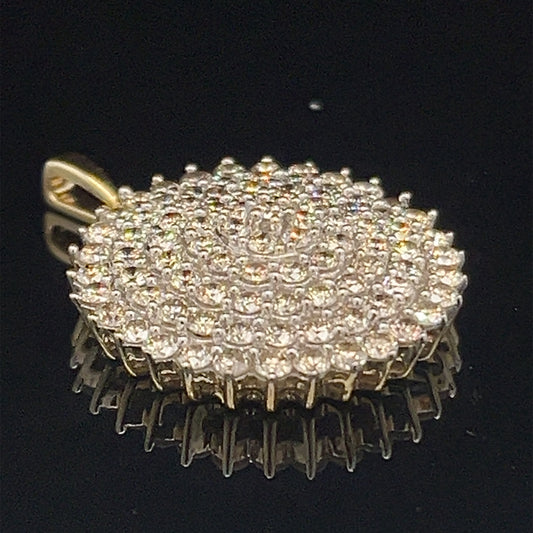 Estate 10K White Gold Natural Diamond Round Disc Pendant Necklace