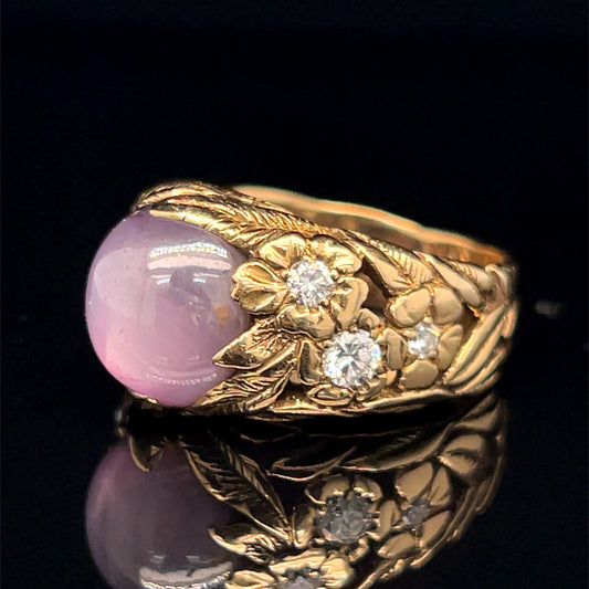 Estate 14K Yellow Gold Floral Natural Purple Star Sapphire with Diamonds Size 7