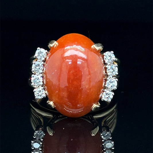 Estate 14K Yellow Gold Natural Rust Red Jadite Diamond Ring Size 8