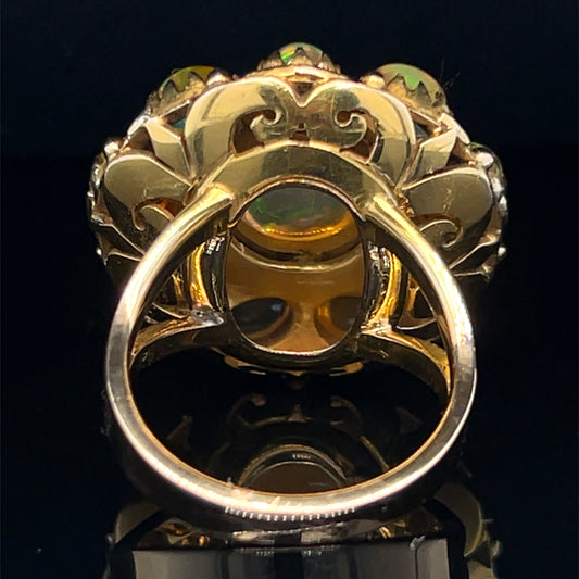 Estate 10K Yellow Gold Mexican Fire Jelly Opal Cluster Halo Ring Size 6.5