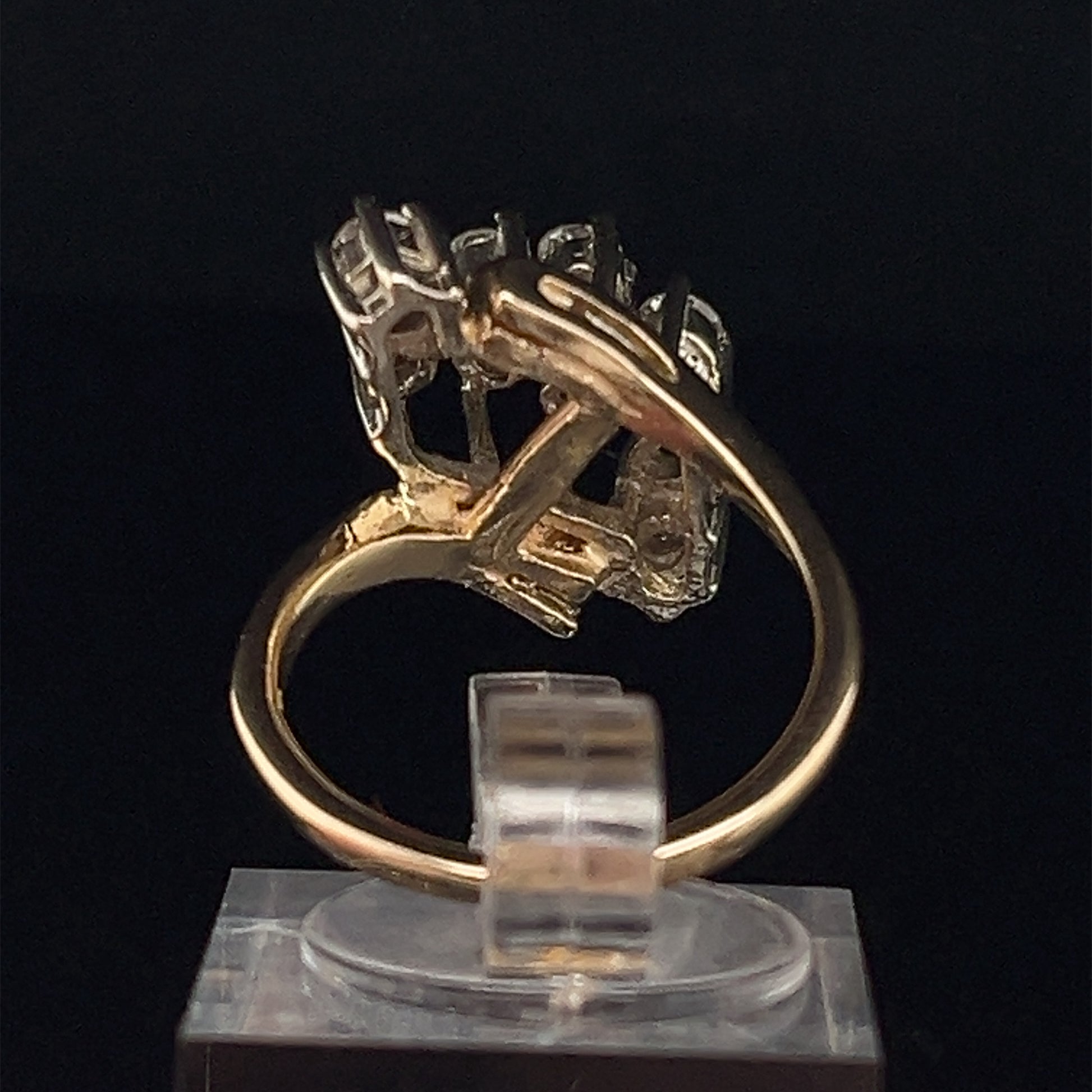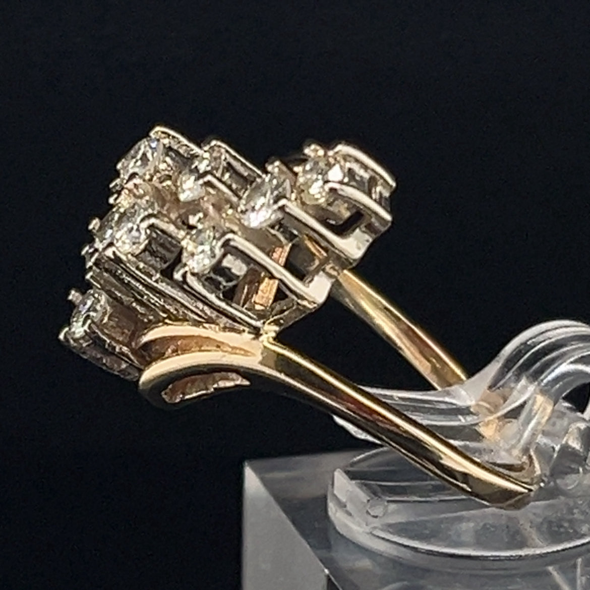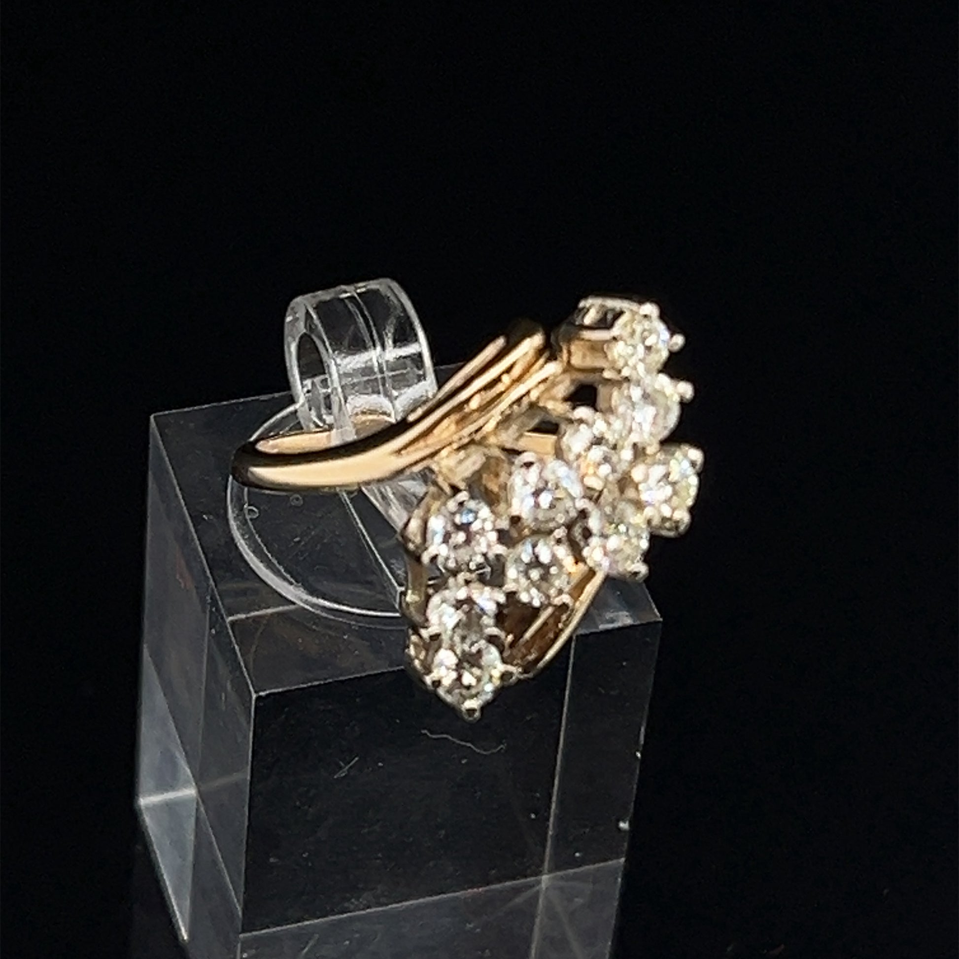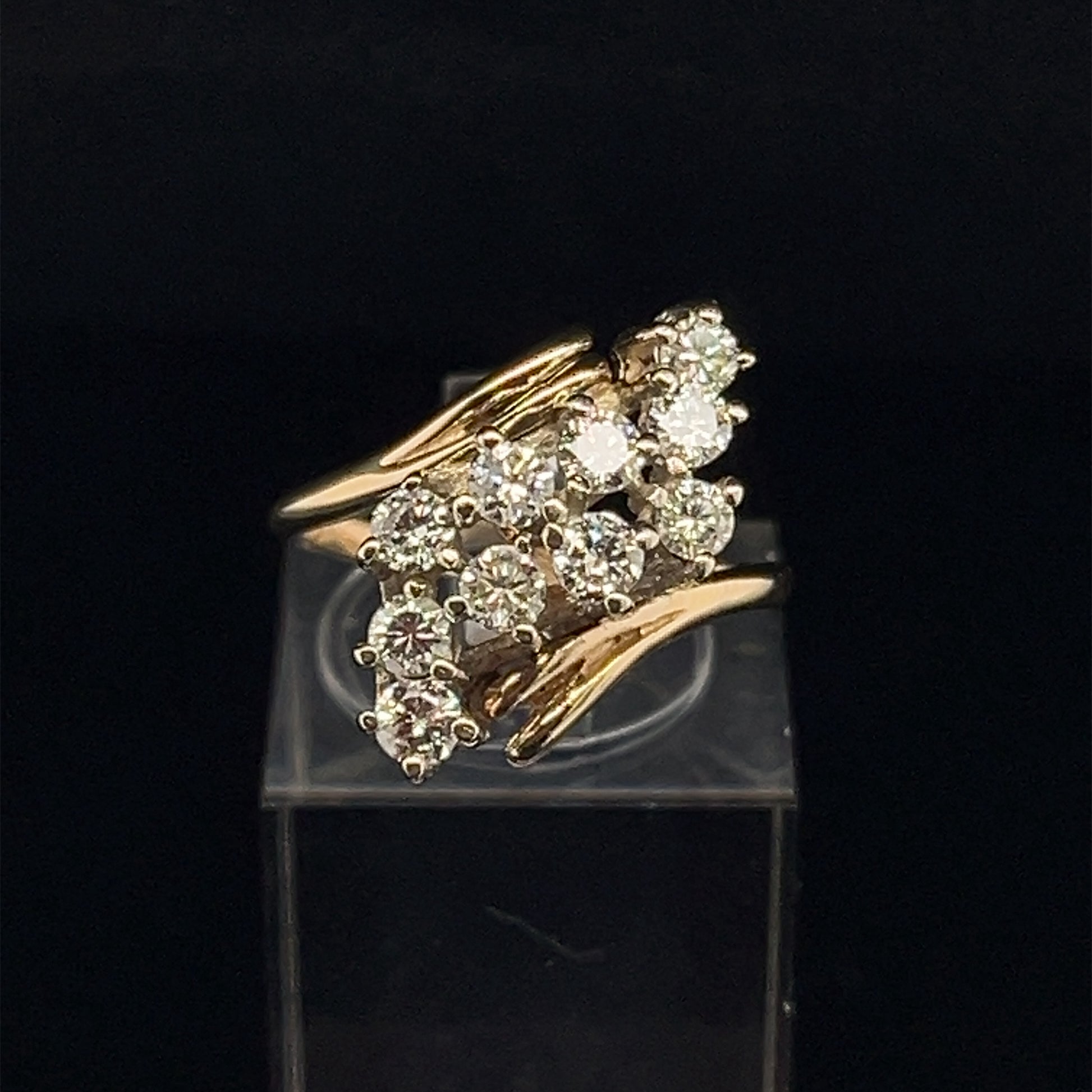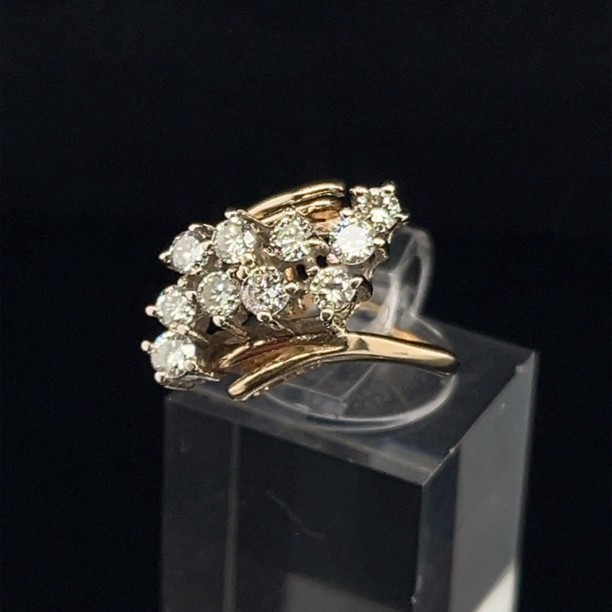 Estate 14K Yellow Gold 10 Natural Brilliant Cut Diamond Waterfall Cluster Ring Size 6