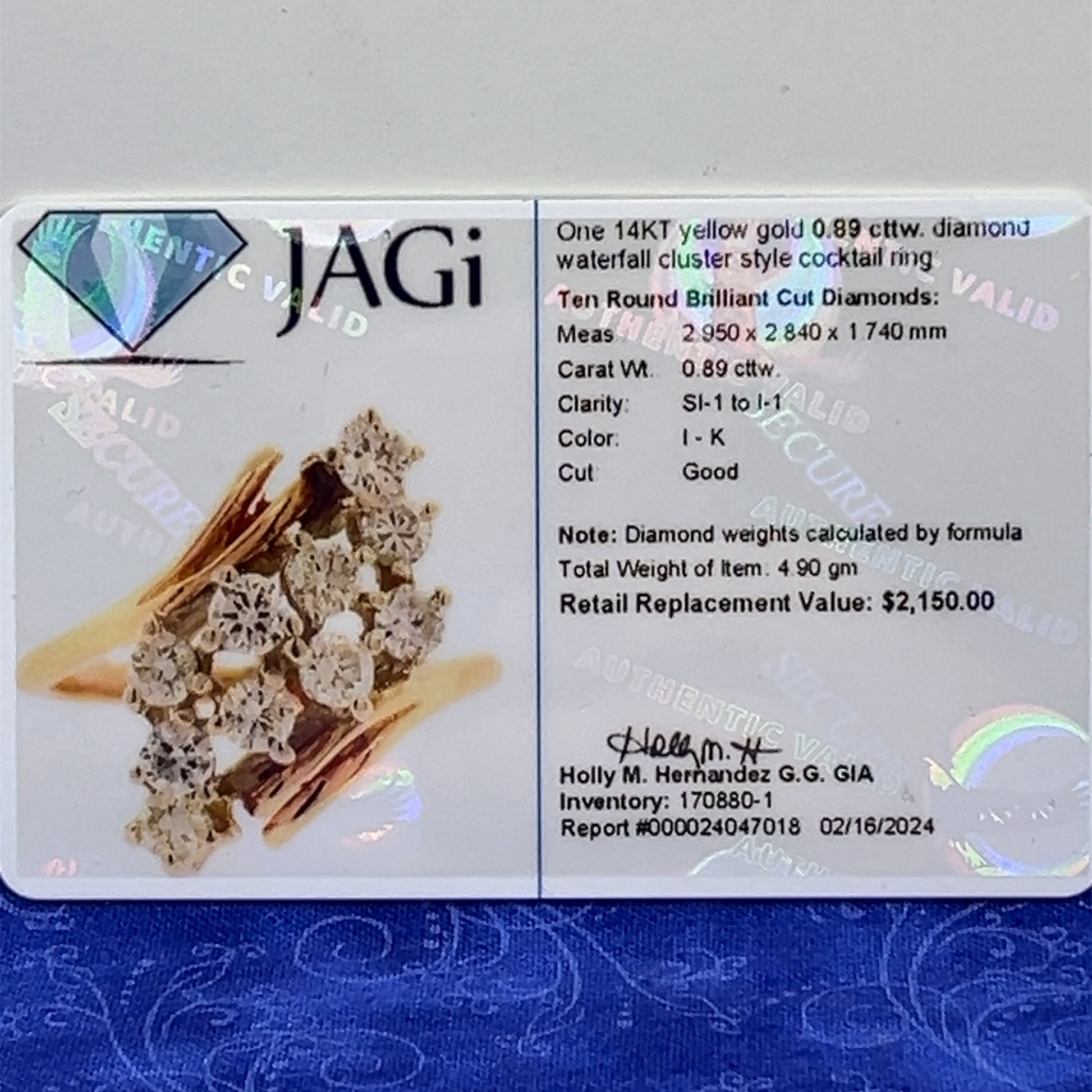 Indulge in luxury with our 14K Yellow Gold 10 Natural Brilliant Cut Diamond Waterfall Cluster Ring. This stunning piece features a sparkling cluster of natural diamonds, expertly set in a captivating waterfall design.