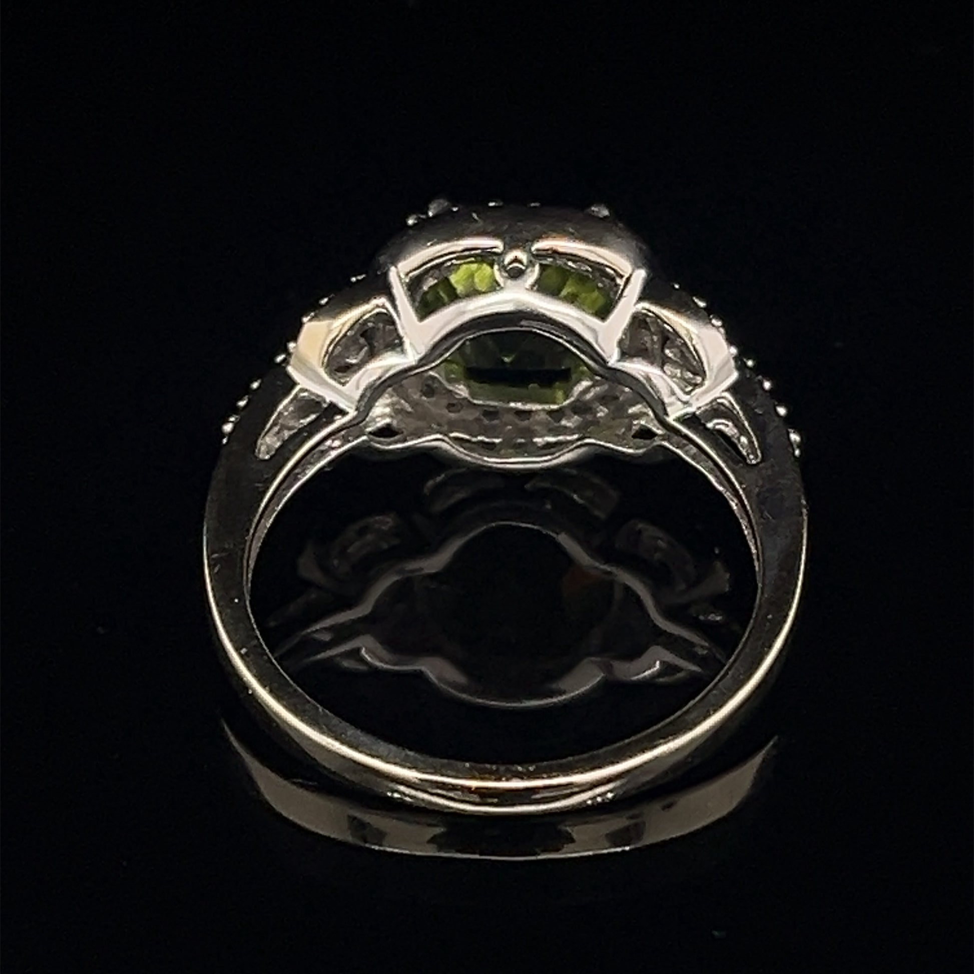 10K White Gold Natural Peridot and Diamond Halo Style Cocktail Ring Size 7.5