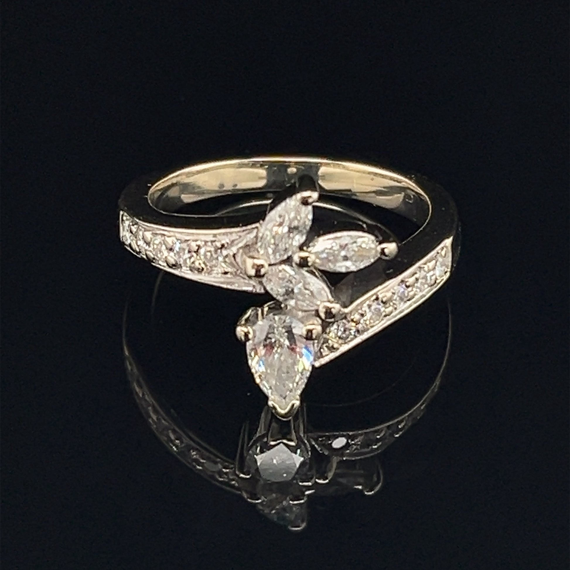Estate 14K White Gold Marquise and Pear Cut Natural Diamond Ring Bypass Style Size 6