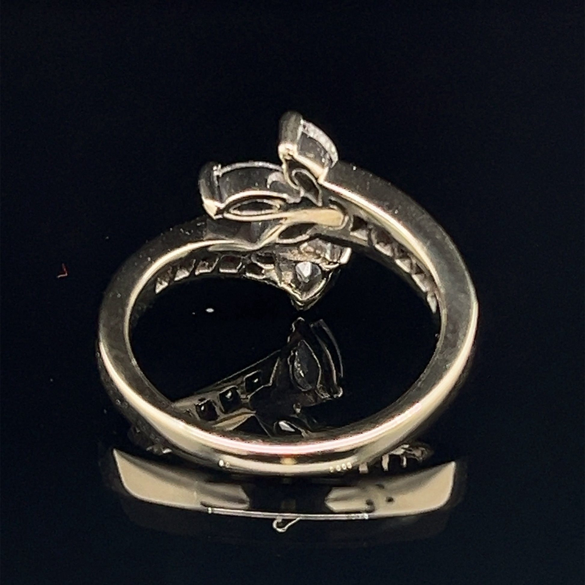 This exquisite ring boasts elegance and luxury with its Estate 14K White Gold band and stunning Marquise and Pear Cut Natural Diamond stones. The unique Bypass Style adds a touch of sophistication to this timeless piece.