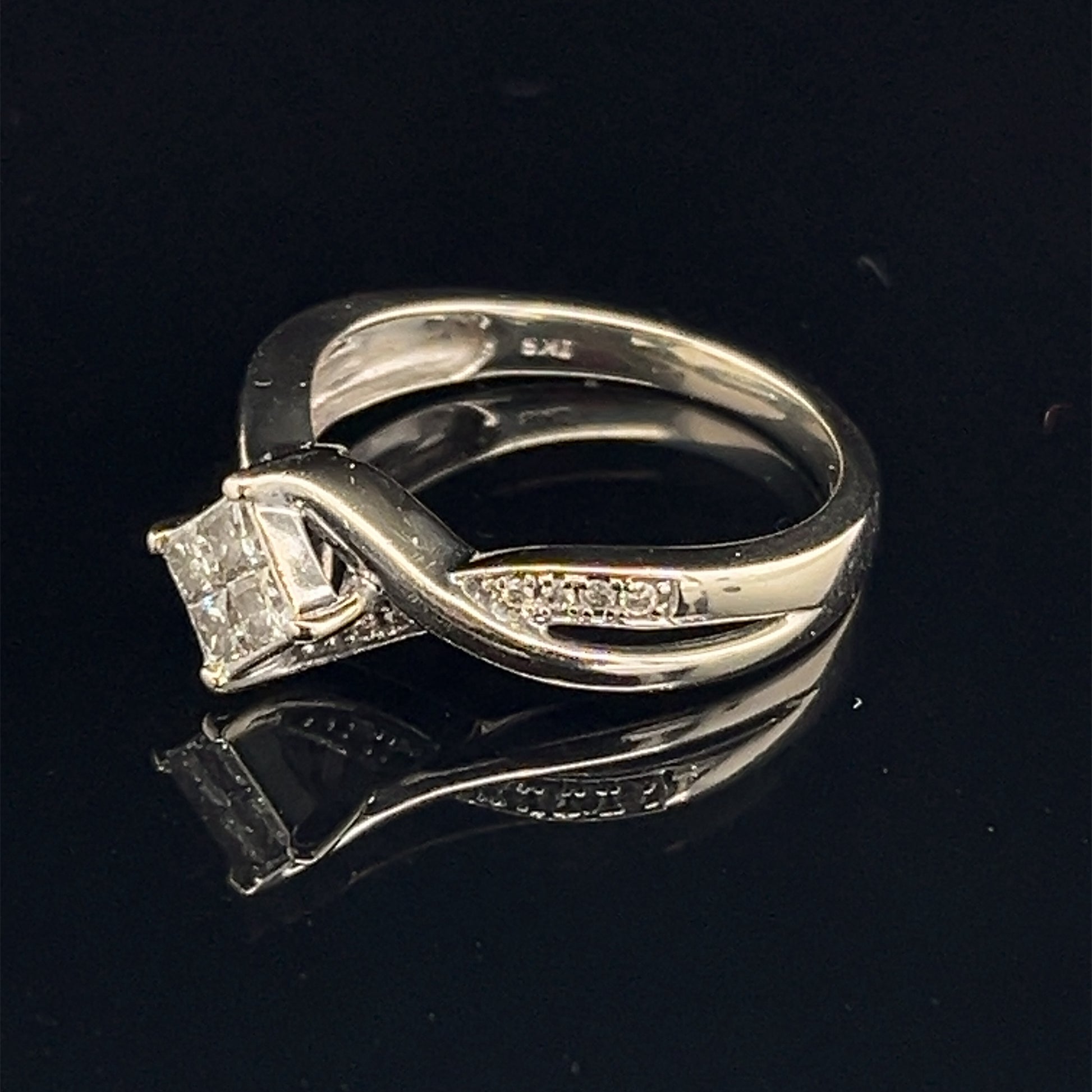 Estate 10K White Gold Natural Diamond Princess and Round Cut Engagement Ring Size 7