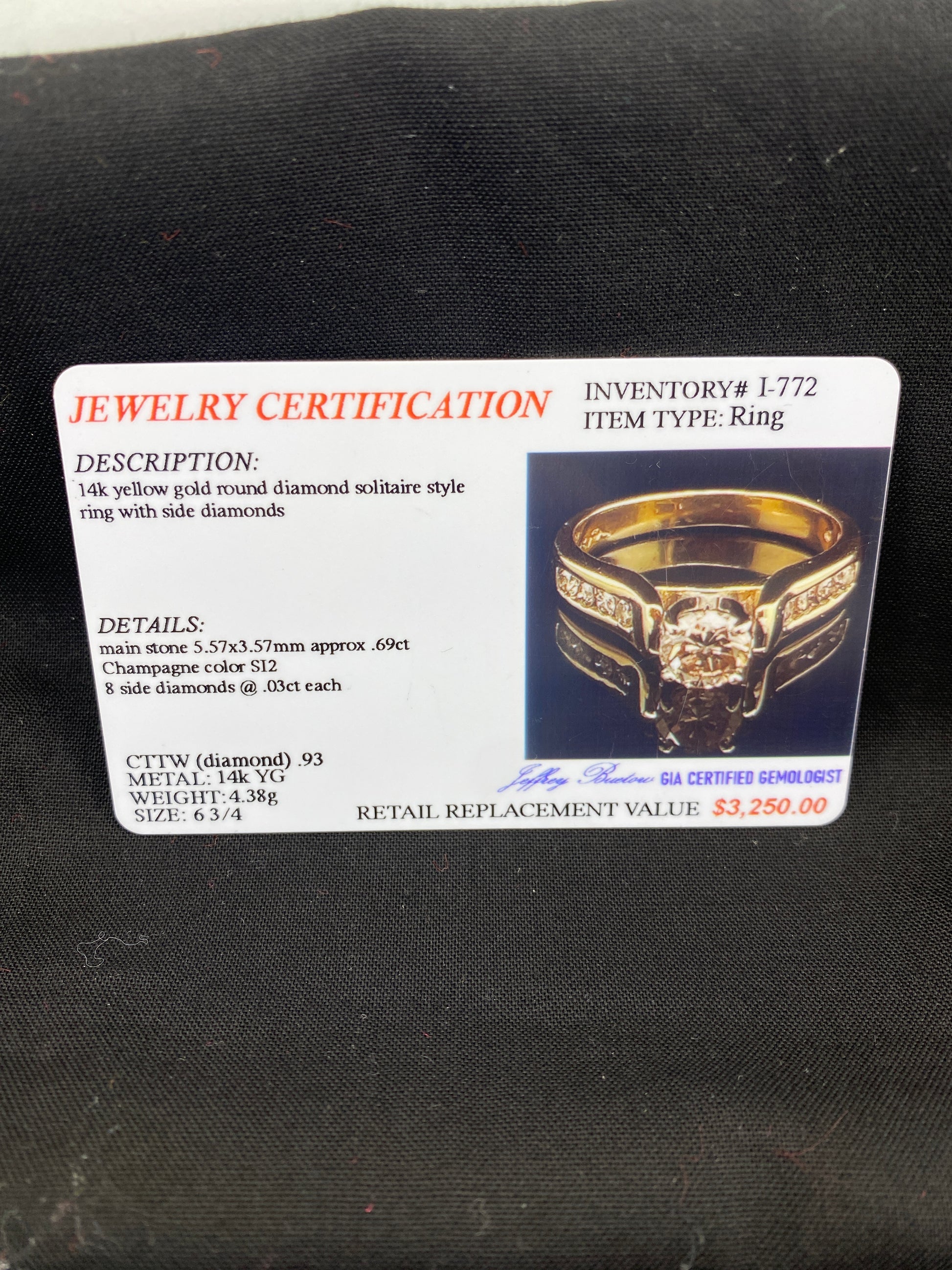 - Center Natural Diamond, .69 ct, SI2, Color Champagne