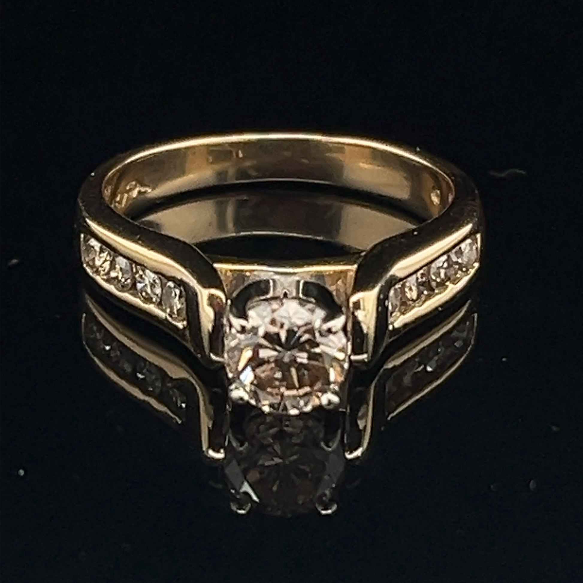 Estate 14K Yellow Gold Natural Round Champagne Diamond Engagement Ring Size 6.75